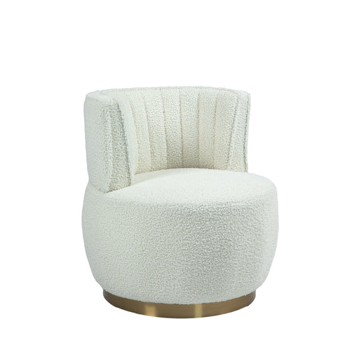 Chenille Fabric Swivel Accent Armchair Barrel Chair With Powder Coating Metal Ring