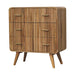 Artisan Furniture Solid Wood T-bar Ridged Chest - This beautiful T-bar Ridged Chest has been constructed from 100% solid mango wood and has a lovely natural oak-ish finish. It has features such as t-bar handles for easy access to the drawers, as well as 4 Nordic style legs for stability and a modern touch. Make full use of this piece in your bedroom and let it take care of storing all your belongings.