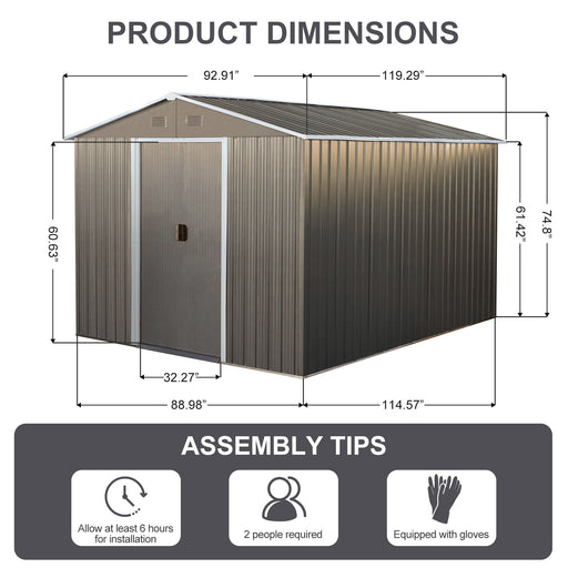 8X10Ft Outdoor Metal Storage Shed - Gray