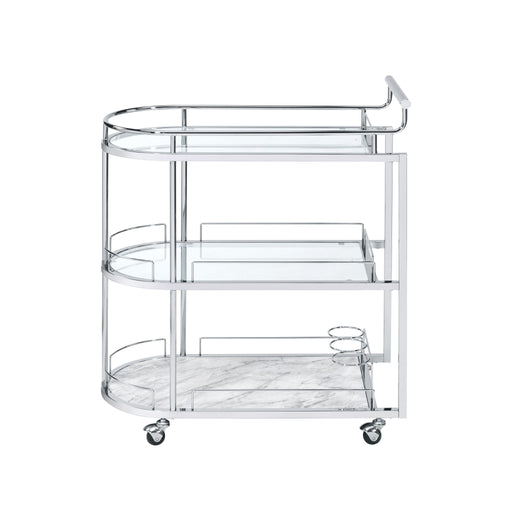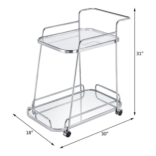 Inyo - Serving Cart - Clear Glass & ChromeProduct Features KD Oval Serving Cart 3 Tier Shelf 5 mm Tempered Glass Case: 1Pc/1Ctn Finish: Clear G...