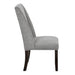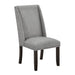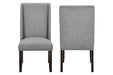 The Faust Upholstered Parsons Dining Chairs combine elegant design with quality construction, making this set of 2 chairs a perfect addition to any dining space. Crafted from solid rubberwood and eco-friendly manufactured woods, these chairs are built to be strong and durable. The solid wood legs provide extra stability, ensuring long-lasting use. The 100% polyester tweed fabric fully upholsters the chairs, offering a soft and easy-to-clean surface. With resilient foam seat cushions and a padded back, these chairs provide restful and supportive seating, making them comfortable and welcoming. Featuring a sleek, contemporary design, the decorative nailhead trim along the edges adds a touch of elegance and sophistication. The dark wooden legs create a strong contrast to the light gray upholstery, resulting in a balanced and modern aesthetic. Ideal for those seeking a blend of luxury, comfort, and style, the Faust Parsons Dining Chairs are a fantastic choice for enhancing your dining area.