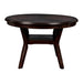 The elegant Gia 5 Piece Dining Table and Chair Set is built with durability and comfort in mind. This dining set provides spacious seating for four, and a handy storage shelf located under the table top to store dinnerware or decor. The dining table apron, table legs and dining chair legs are crafted of solid Rubberwood to add strength and stability. The distinctive reverse diamond Mindi wood veneer dining table top accents the beautiful wood grains which are highlighted by the multi-step finish, with just a touch of red for richness. The set includes four comfortable dining chairs with pu upholstered seat cushions and backrests. The final touch is Gia's signature interlocking chain design on the chair back, giving this welcoming dining set a touch of sophistication. The result is a casual, contemporary dining set, perfect for your dining room or kitchen.