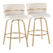 Cinch - Glam / Art Deco Fixed Height Counter Stool With Swivel With Round Footrest (Set of 2) - Gold / Cream 22.99"W x 22.99"D x 36.5"H - 16.49 lb