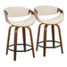 Curvini Mid-Century Modern Fixed Height Counter Stool With Swivel (Set of 2) - Walnut / Cream 20.51"W x 20.98"D x 34.49"H - 15.5 lb
