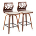 Folia - Mid-Century Modern Counter Stool (Set of 2) - Walnut / Cream 17.52"W x 15.98"D x 35.98"H - 14.51 lb