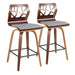 Folia - Mid-Century Modern Fixed Height Counter Stool With Swivel With Footrest (Set of 2) - Walnut / Light Gray / Black