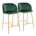 Fran - Pleated Waves Contemporary / Glam Fixed Height Counter Stool (Set of 2) - Gold / Green 20.98"W x 19.76"D x 35.98"H - 13.01 lb