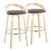 Grotto - Contemporary Fixed Height Barstool With Swivel With Round Footrest (Set of 2) - Natural / Gray