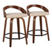 Grotto - Mid-Century Modern Fixed Height Counter Stool & Swivel With Round Footrest (Set of 2) - Walnut / Cream 17.99"W x 19.02"D x 29.76"H - 12.5 lb