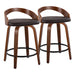 Grotto - Mid-Century Modern Fixed Height Counter Stool & Swivel With Round Footrest (Set of 2) - Walnut / Brown 17.99"W x 19.02"D x 29.76"H - 12.5 lb
