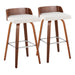 Maya - Mid-Century Modern Fixed Height Barstool With Swivel With Square Footrest (Set of 2) - Walnut / Cream 22.01"W x 22.01"D x 35.75"H - 13.49 lb