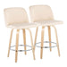 Toriano - Contemporary Fixed Height Counter Stool With Swivel & Round Footrest (Set of 2) - Natural / Cream