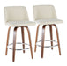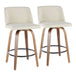 Toriano - Mid-Century Modern Counter Stool (Set of 2) - Cream / Walnut 19.02"W x 17.52"D x 35.0"H - 14.0 lb