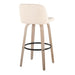 - Comfortable Seating: The barstool includes a cushioned backrest and seat upholstered in fabric, providing comfort during extended use.