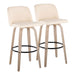 Toriano - Mid-Century Modern Fixed Height Barstool With Swivel With Round Footrest (Set of 2) - White Washed / Cream