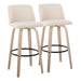 Toriano - Mid-Century Modern Fixed Height Barstool With Swivel And Round Footrest (Set of 2) - White Washed / Cream