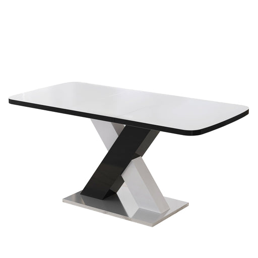 Rectangle Dining Table With Stretchable Top, X Shape Mdf Legs With Steel Base - White / Black