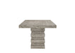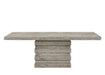 Impress all your guests during your next dinner party with this Faustine dining collection. The dining table strikes a clean-lined silhouette and boasts a single pedestal base for a contemporary style touch. It is a salvaged light oak finish that is versatile enough to blend with nearly any color palette and leave everyone talking. The matching side chairs come in two options: a round padded back with Sheraton styled legs or fully fabric-covered. The collection is the perfect centerpiece for your dining room, whether you are crafting a cottage-chic aesthetic or a more traditional display.