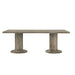 Ideal for a sophisticated dining area, the Gabrian dining collection and its beautifully artistic accents will transform a conventional room into a luxurious dining space. The table features a spectacular double pedestal base with fluted column design type setting. While the chairs are upholstered in a two-tone beige fabric. Every piece of the collection brings a high-fashion look to a cottage-themed living space.