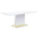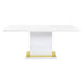 The sleek clean-lined table Gaines dining table offers subtle a hint of glam, the base offers a touch of gold to enhance the textured vertical lined pedestal. The white high gloss finish reflects light and makes any dining space appear larger and grander. Ample enough to showcase an impressive spread for all your guests to enjoy.