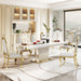 Top Dining Table With Gold Finish Corner, Pillar And Gold Finish Stainless Steel Base - White 78.74"W x 39.37"D x 29.92"H - 166.23 lb