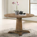 Simple yet elegant, the Yotam dining collection is one to be desired. Ideal for a smaller dining room or as a breakfast table. Its round tabletop perched atop a pedestal base. The salvaged oak finish adds the right amount of weathering that adds charm and appeal. Pair it with the matching side chairs. The side chairs offer classic, refined features such as button tufting and nail-head trim. It comfortably seats four, ideal for intimate gatherings. Whatever your dining needs might be, this transitional table is guaranteed to meet all your expectations.