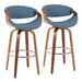 Curvini - Mid-Century Modern Barstool (Set of 2) - Walnut / Blue