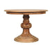Round Turned Dining Table - Create an elegant dining experience with this Round Turned Dining Table. Drawing inspiration from a classic French design it combines graceful curves with warm wood tones. Crafted from solid mango wood with an oak-ish finish this round table is the perfect piece for any dining room or kitchen. Every piece of furniture is individually handcrafted and includes swing care tickets explaining the cautions and aftercare instructions.