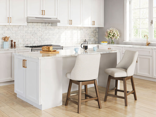 Cabalynn - Upholstered Swivel Barstool (Set of 2) - Oatmeal / Light Brown