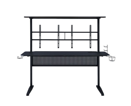 Enjoy a comfortable computer gaming experience with this versatile game table. Featuring streamlined metal structure with industrial style, the des...