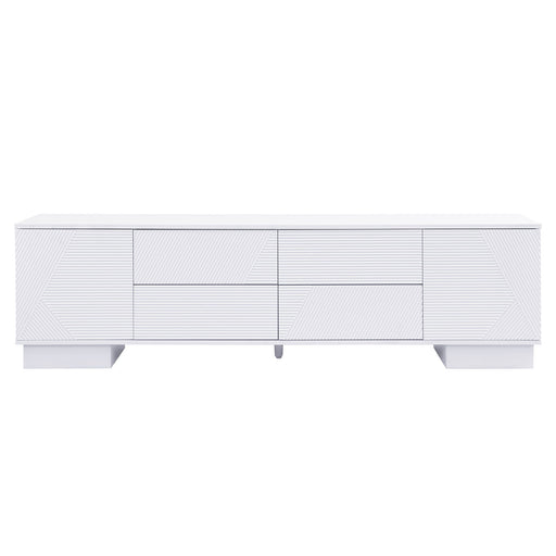 TV Stand, Console, Media Entertainment Center, Storage Shelves, Glossy Contemporary & Modern - White