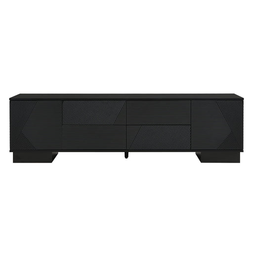 This seventy-inch TV stand combines sculptural texture and functional storage for a grounded living room anchor. Four flat-panel doors conceal gene...