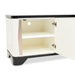 Integrate functional elegance into your living space with the Tuxedo Media Cabinet. This sophisticated piece is crowned with a luxurious marble inlay that adds a touch of opulence to its sleek design. The cabinet features internal adjustable shelving, offering customizable storage solutions for all your entertainment essentials. Additionally, strategically placed grommets for cables ensure your setup remains neat and accessible.