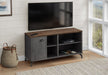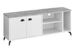 - Industrial Design: This TV stand features an industrial style with a unique faux concrete finish complemented by a reclaimed wood-look. It's accentuated with sleek, angled legs and a stylish metal cup pull cabinet door handle.