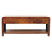 Aspen Media Unit - Discover the Aspen Media Unit: a piece expertly crafted from 100% solid mango wood in a lush chestnut finish. Designed with smooth corners for added safety and a contemporary flair, it seamlessly fits into a variety of interior decor styles. Offering ample storage and a sleek aesthetic, the Aspen Media Unit is the perfect addition to any living area, ideal for organizing media components and displaying your favorite decorative pieces. A durable investment that enhances the functionality and style of your home.