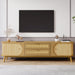Rattan TV Stand For Tvs Up To 75'', Modern Farmhouse Media Console, Entertainment Center With Legs, TV Cabinet For Living Room, Home Theatre - Natural Wood 66.93"W x 15.55"D x 18.11"H - 65.26 lb