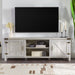 Rustic Farmhouse Double Barn Door 70" TV Stand For 80" TVs With Center Shelves - Gray Wash 70.0"W x 15.98"D x 24.02"H - 91.01 lb
