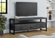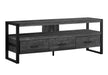 Design and Finish: The TV stand boasts a contemporary, industrial-inspired design, finished in a rustic black reclaimed-look, offering a modern touch to any living space.