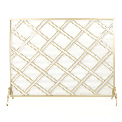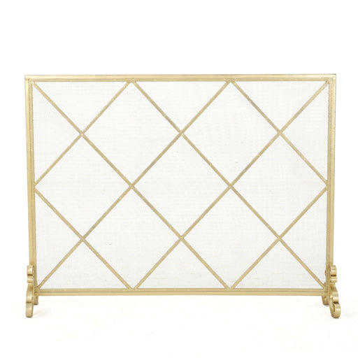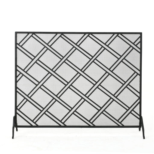 Minimalist Single Panel Iron Fireplace Screen With Diamond Design