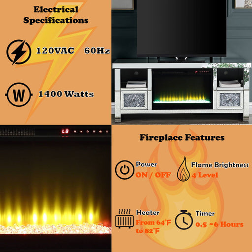 Noralie - 26" TV Stand With Fireplace - Mirrored & Faux DiamondsProduct Features 2 Storage Drawers & 2 Open Compartments Adjustable Tempera...