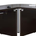 Outfit an office at home or in a workplace. Trending and practical, this corner table joins a duo of components to form an L-shaped desk configuration. With a cappuccino finish, it's inviting and versatile. Silver hardware offers a universal match. Make the most of a home or office space and create more space for efficient productivity.