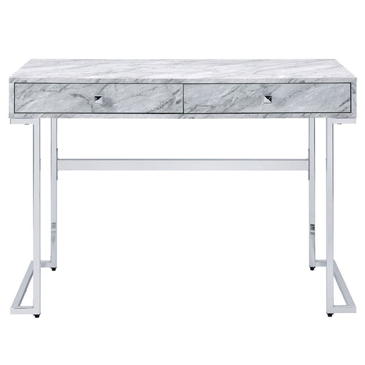Tigress - Writing Desk - White Printed Faux Marble Top & Chrome