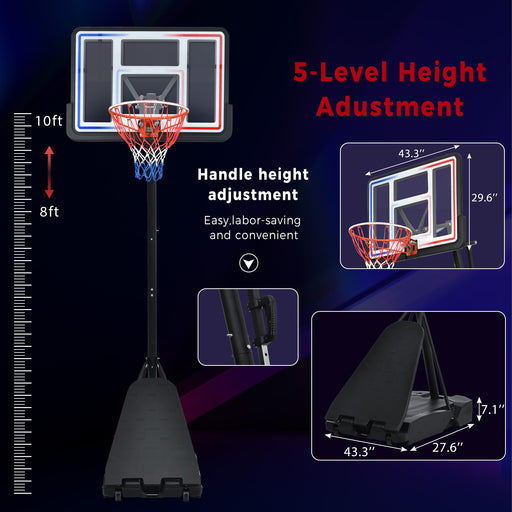 Portable Basketball Hoop Basketball System 8-10Ft Height Adjustable For Youth Adults LED Basketball Hoop Lights, Colorful Lights, Waterproof, Super Bright To Play At Night Outdoors, Good Gift For Kids - Black