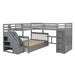Twin Twin Over Full L Shaped Bunk Bed With 3 Drawers, Portable Desk And Wardrobe - Gray 118.31"W x 94.09"D x 62.2"H - 375.05 lb