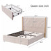 Queen Size LED Bed Frame With Storage Drawers, Velvet Platform With Wingback Headboard - Beige