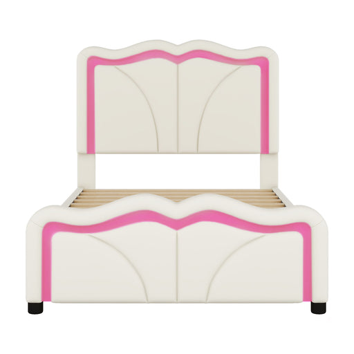 Upholstered Platform Bed & Curve Shaped And Height Adjustable Headboard, LED Light Strips