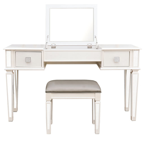 Edalene - Vanity Desk With Mirror - Pearl WhiteProduct Features Vanity Desk w/Mirror Leg Desk with 1 Drawer Jewelry Mirror with Tilt Function and 2...