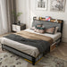 Bed With Charging Station, American Design Upholstered Headboard, Metal Platform