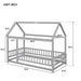 Twin Size Floor Wooden Bed With House Roof Frame, Fence Guardrails - Gray 79.49"W x 44.8"D x 66.18"H - 51.81 lb