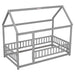 Full Size Floor Wooden Bed With House Roof Frame, Fence Guardrails - Gray 79.49"W x 60.0"D x 73.82"H - 55.09 lb